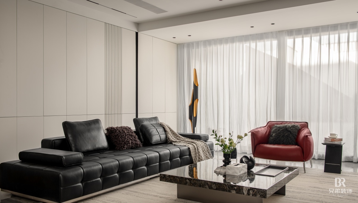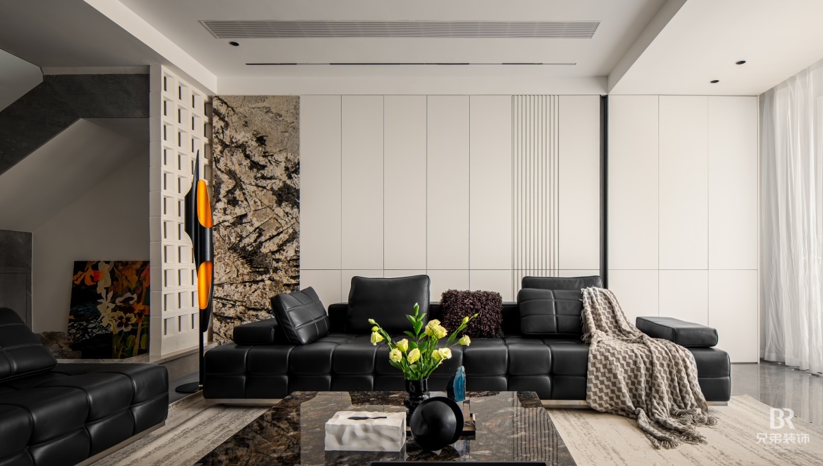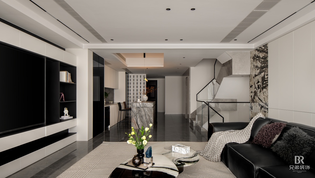 400㎡轻奢风别墅:用黑白灰演绎 “低调的奢华”,每一寸都藏着设计野心 黑与白的高级游戏:材质美学的克制与张力 客厅 C 位:挑空墙面嵌入整幅黑白根大理石,天然石纹如泼墨山水,与黑色真皮沙发形成 “冷与暖的对话”;悬浮式岩板茶几自带 “水墨流动感”,搭配毛绒抱枕与编织毯,硬挺中透出慵懒。 光影魔术:无主灯设计 + 嵌入式筒灯 + 沙发背景暗藏灯带,白天是 “极简白月光”,夜晚秒变 “氛围制造机”;百叶帘滤过的阳光斜切在黑灰地砖上,连灰尘都成了动态装饰。 旋转楼梯:把 “过渡空间” 变成艺术装置 几何感暴击:玻璃护栏 + 石材踏步 + 黑色金属收边,打造 “悬浮式楼梯井”,从上往下看如 “立体黑白棋盘”;踏步暗藏感应灯带,深夜下楼像踩在流动的星光上。 空间作弊术:挑空 的楼梯间与客厅贯通,视觉上 “拉高 2 层楼”,连带餐厅、茶室都跟着通透起来。 公区一体化:150㎡的 “社交场”+“生活秀” 餐厨 C 位:长大理石岛台既是美食博主的 “直播台”,也是 family day 的 “互动中心”;开放式厨房用黑框玻璃门 “隐形分隔”,油烟被吸走,高级感留下。 洄游动线:从客厅到餐厅再到茶室,无墙阻隔却层次分明 —— 黑皮沙发区是 “慵懒结界”,岩板餐桌区是 “烟火剧场”,新中式茶室是 “精神飞地”。 卧室:把 “奢华感” 揉进睡眠里 主卧暗涌:整面黑色木饰面背景墙 + 悬浮式床头柜,灯光一打像 “住进美术馆”;床品选米咖色肌理棉麻,躺上去像被云朵接住。 次卧惊喜:黑白灰基底里跳脱出焦糖色皮质单椅,窗边设 “阅读角”,百叶帘调节光线,清晨喝咖啡看报,秒变 “都市隐士”。 茶室:当新中式撞上轻奢风 材质混搭:胡桃木茶台 + 大理石观景台 + 金属收边,茶香与木香缠绕;定制博古架陈列茶具,玻璃柜门里 “藏着半部茶文化史”。 光影禅意:玻璃天花引入自然光,下午的阳光透过竹帘在茶席上写诗;嵌入式灯带模仿 “烛光摇曳”,夜茶时连影子都温柔。 设计暗线:藏在细节里的 “奢侈” 收纳隐身术:客厅整墙通顶柜,把 “琐碎” 藏进 “极简”;楼梯下的储物间,用黑框玻璃门伪装成 “艺术展柜”。 科技感拉满:全屋智能联动,“一句话切换场景”—— 看电影时灯光调至 15%,泡茶时自动播放古琴曲。 这套 400㎡别墅,把 “轻奢” 玩成了生活的呼吸感:黑与白的碰撞是视觉的高潮,材质的混搭是触觉的惊喜,空间的通透是心境的留白。 奢华不是贴满金箔,而是每一寸都经得起凝视,又容得下烟火。