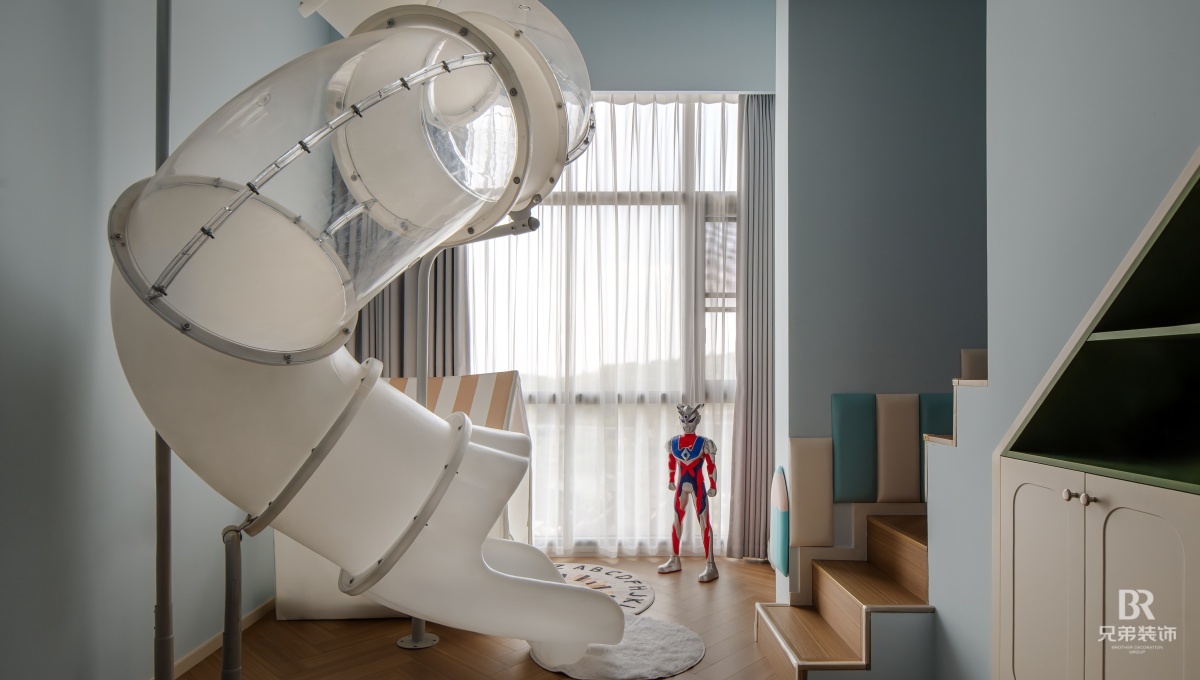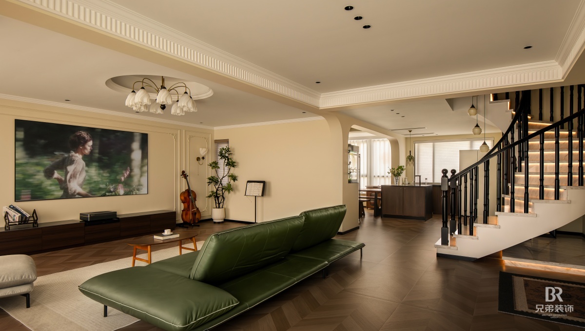 二层主卧:把 “巴黎酒店” 搬回家 整面米色墙布 + 雕花床头板,床边的胡桃木梳妆台嵌着黄铜把手,连台灯的陶瓷底座都复刻了法式古董店的模样;露台的白纱帘随风飘,清晨喝咖啡看报,秒变 “都市隐士”。 儿童区:法式浪漫的 “成长版” 男孩房的蓝色墙漆里藏着 “太空舱滑梯”,粉色公主房的贝壳床顶卧着小皇冠 —— 现代法式不只是 “成人的优雅”,更是 “孩子的童话”。 设计暗线:藏在跃层里的 “生活哲学” 收纳隐身术:楼梯下的储物间、客厅的通顶柜,把 “琐碎” 藏进 “雕花” 里; 光影魔术手:无主灯 + 嵌入式筒灯 + 复古壁灯,白天是 “阳光房”,夜晚是 “小剧场”; 空间作弊器:客厅 + 开放式布局,空间通透感翻倍。 这套现代法式跃层,把 “浪漫” 从风格变成了生活方式:复古雕花是对精致的致敬,极简线条是对实用的妥协,而跃层的空旷感,刚好容得下 “慵懒与野心” 的共生。