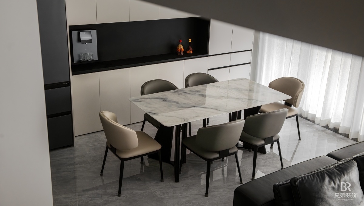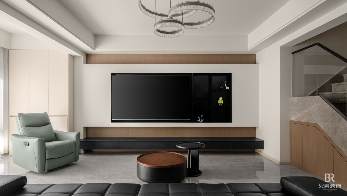 黑框玻璃扶手+石材踏步,简约不简单,挑空的楼梯间连通1楼和2楼,整个空间瞬间通透感拉满,完全没下叠的压抑感~